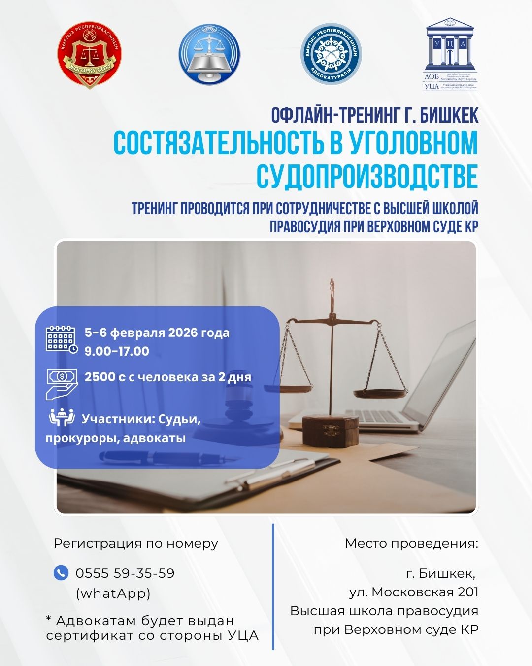 Высшая школа правосудия при Верховном суде Кыргызской Республики приглашает адвокатов принять участие в тренинге, который состоится: