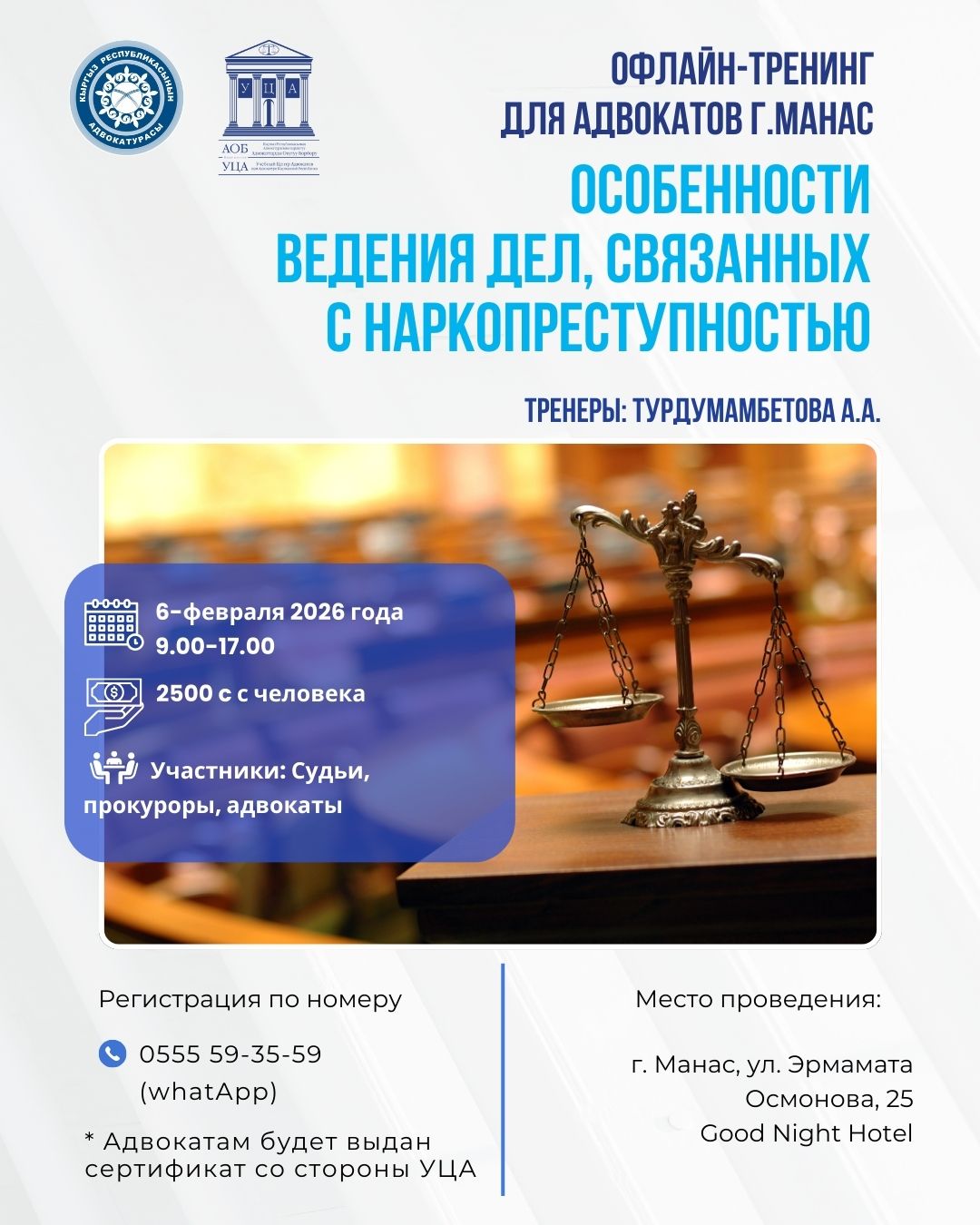 Тренинг проводится Учебным центром адвокатов при Адвокатуре Кыргызской Реcпублики.